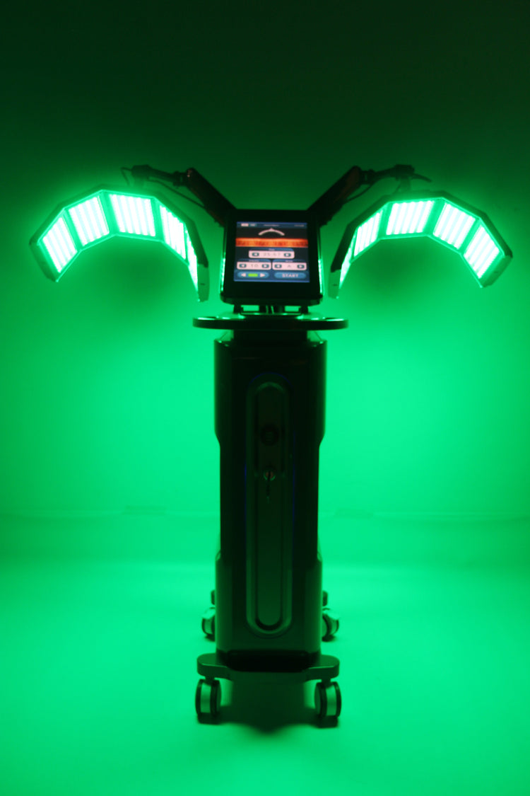 - Grünes Licht: 520 nm Wellenlänge; Hautausgleichsfunktion, Reduzierung der Fettdrüsenerregung, Stabilisierung, Anwendung bei empfindlicher Haut.