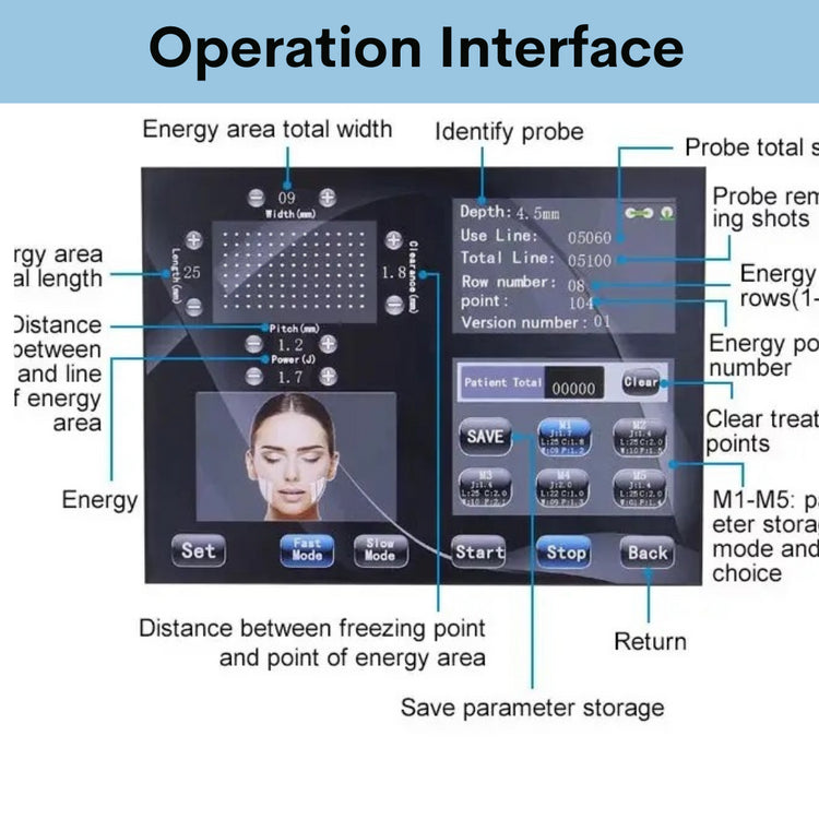 9D Face Lifting HIFU lleva el HIFU tradicional al siguiente nivel. Cuenta con parámetros multidimensionales libremente ajustables, incluida la distancia de los puntos, la distancia de las filas y la energía de cada punto para un tratamiento personalizado. Puede controlar la profundidad precisa del tratamiento con la máxima libertad y lograr los resultados de nivel más profesional.